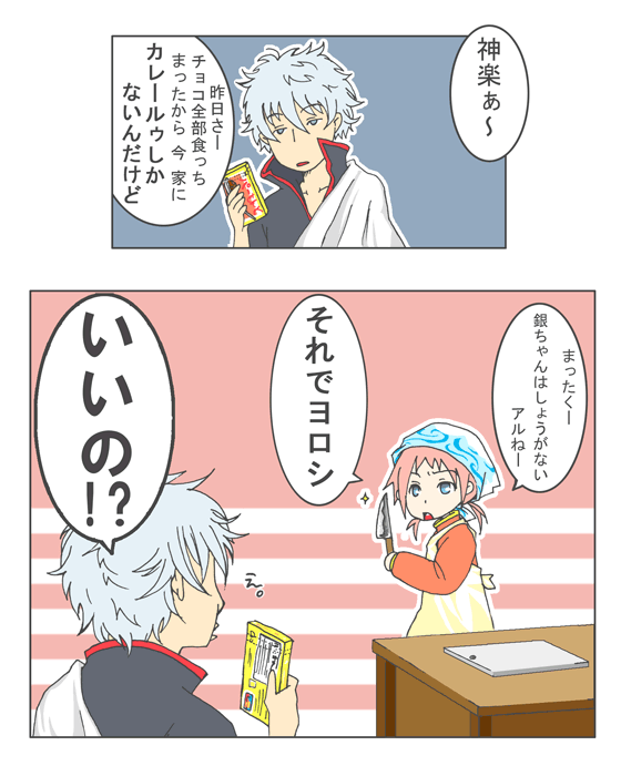 エプロンは新ちゃんの、三角巾は銀さんのです。